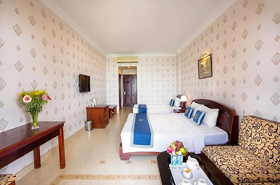 Beachfront Hotel sits along the sands in Vũng Tàu, a 3-star base about 1,5mi from the city center, at 30-32 Tran Phu Str., Ward 1. On-site dining comes from Rose, a family-friendly, traditional restaurant set in a true beachfront spot. Free WiFi, a 24-hour front desk, and room service keep things convenient, while a terrace, garden view, balcony, and air conditioning add comfort to the seaside stay.
